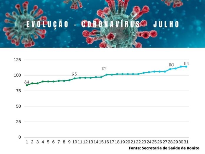 Conforme boletim epidemiológico da Secretaria Municipal de Saúde, o mês começou com 84 casos positivos e encerrou, nesta sexta-feira (31) com 114 confirmações, destes, 102 já estão recuperados, ou seja, município tem hoje 12 casos ativos, sendo em 10 em isolamento domiciliar e 2 internados.