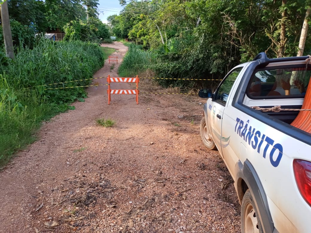 As sinalizações devem permanecer no local até a semana que vem, quando equipes deverão fazer os reparos para solucionar o problema.