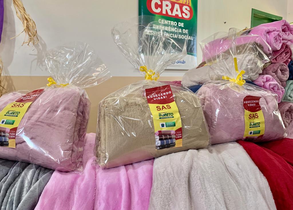 Com as baixas temperaturas que atingiram o Estado nos últimos dias e consequentemente chegou à cidade de Bonito. A Secretaria Municipal de Assistência Social em parceria com o Governo do Estado de Mato Grosso do Sul, uniram forças para aquecer a vida das famílias que fazem parte de algum programa social e que são moradores do município, começaram a fazer a distribuição dos 390 cobertores na manhã desta quarta-feira, 30 de junho. A primeira entrega que já beneficiou 37 famílias foi realizada no CRAS da Vila Marambaia.