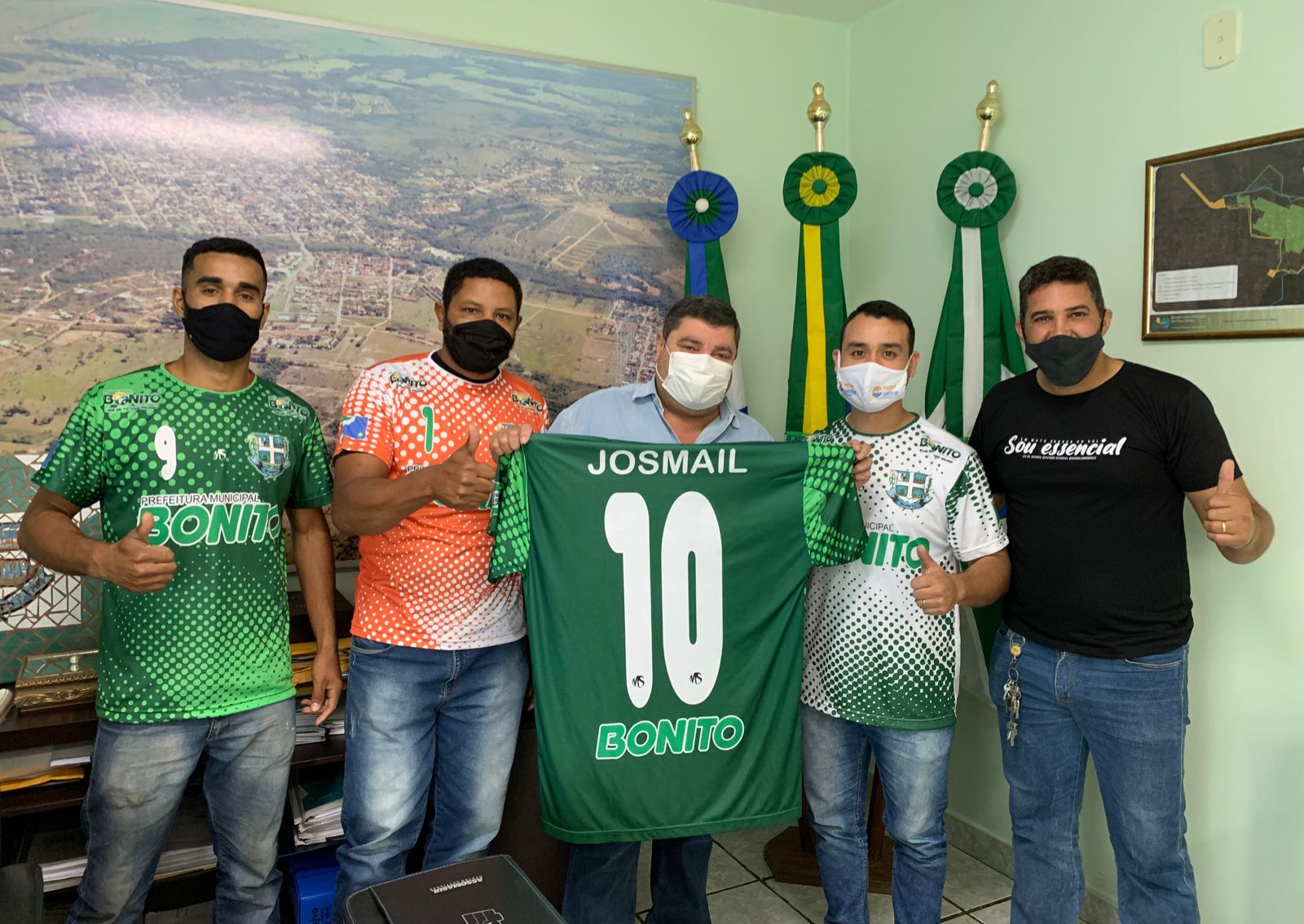 “A gente fica muito contente quando vê essa união no esporte e principalmente quando tem atletas representando a nossa cidade. Agradeço a visita e a camiseta personalizada que recebi da equipe que levará o nome de Bonito para os campos durante a disputa. Vamos ficar por aqui na torcida para que o time alcance um bom resultado”, destacou o prefeito Josmail Rodrigues.