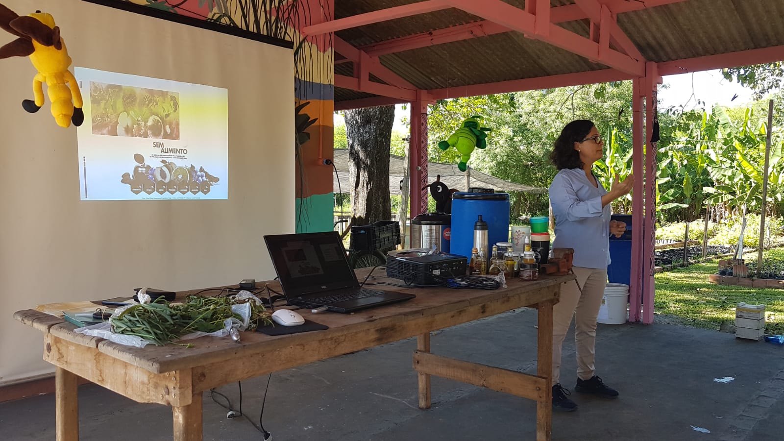 A abordagem do curso foi teórico e prático, buscando responder dúvidas sobre criação manejo e produção das abelhas e o uso dos produtos provenientes da criação racional de abelhas sem ferrão.