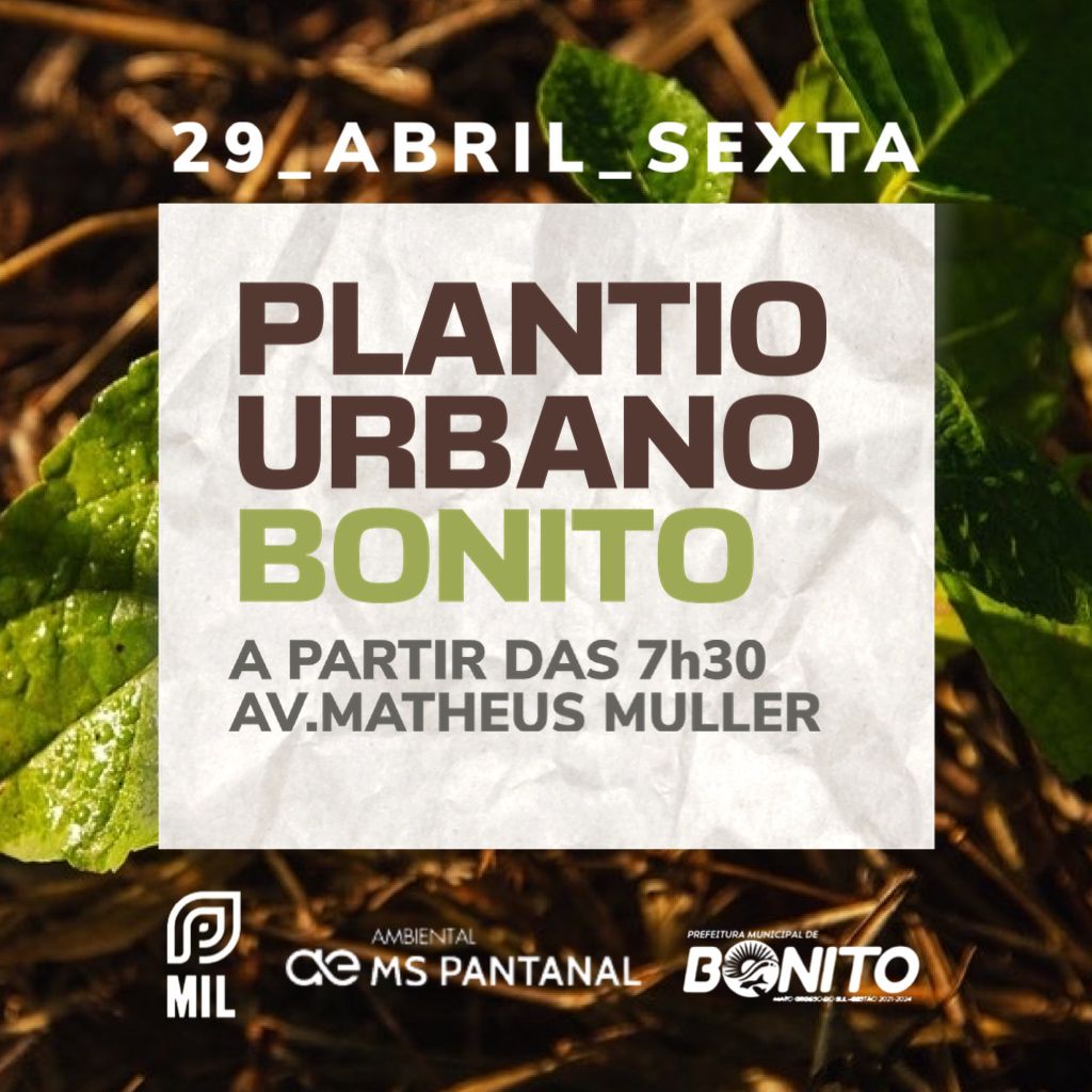 A Prefeitura Municipal, através da Secretaria Municipal de Meio Ambiente em parceria com o coletivo Mil pelo Planeta e a Ambiental MS Pantanal vem convidá-lo(a) para Dia de Plantio Urbano na Avenida Matheus Muller, no trecho entre o Hospital João Darci Bigaton e o Portal do Rio Formoso.