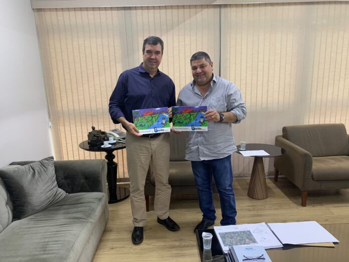 O prefeito Josmail Rodrigues presenteou o governador Eduardo Riedel com o Calendário de Bonito 2023, ilustrado com desenhos feitos por alunos das Escolas Municipais de Bonito, destacando as belezas naturais e particularidades culturais do município. O calendário é resultado dos programas de Educação Ambiental da Secretaria Municipal de Meio Ambiente, em parceria com o Instituto Águas da Serra da Bodoquena (IASB).